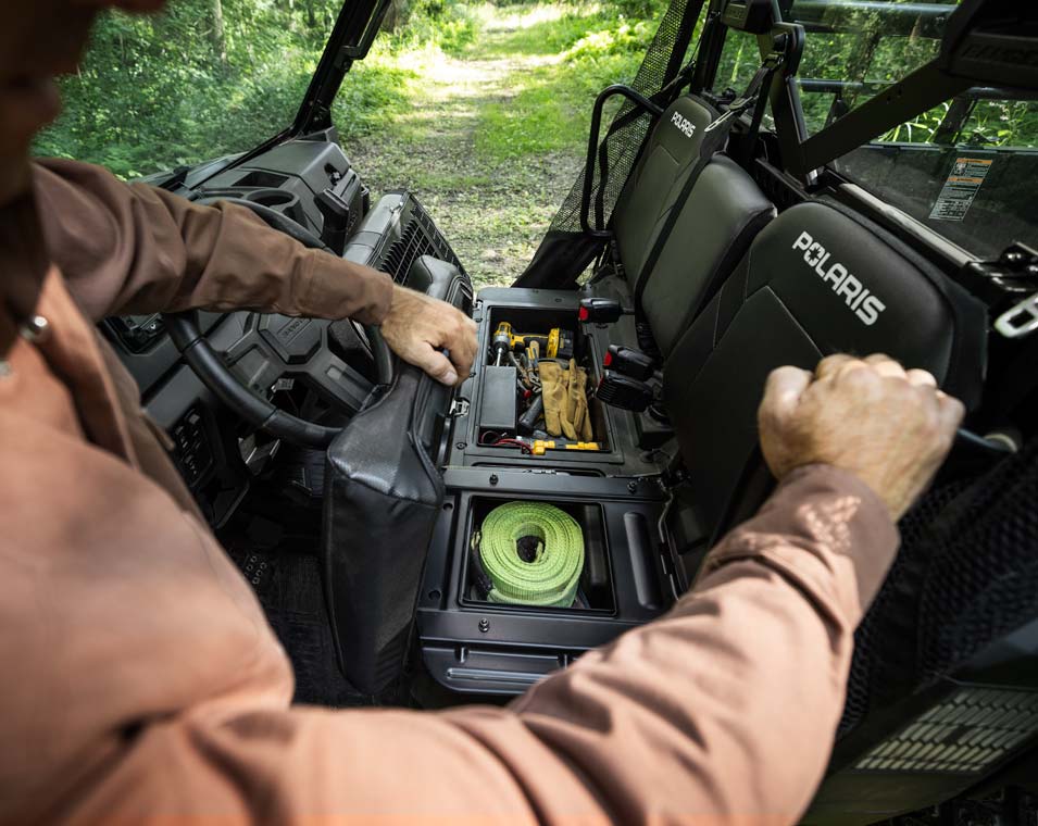 Die bequemen Sitze und der integrierte Stauraum in der Fahrerkabine bieten dir genügend Platz für alle wichtigen Dinge - für ganze Tage abseits der Straße.