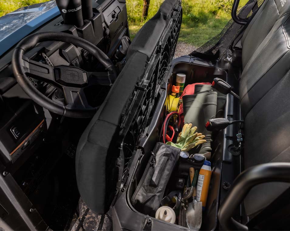 Der RANGER SP 570 ist einfach zu handhaben. Seine klassenbeste Federung und Bodenfreiheit sorgen für eine angenehme Fahrt. Und sein geräumiger Innenraum bietet viel Beinfreiheit und reichlich Stauraum. Damit du mit Freunden oder der Familie komfortabel unterwegs bist.