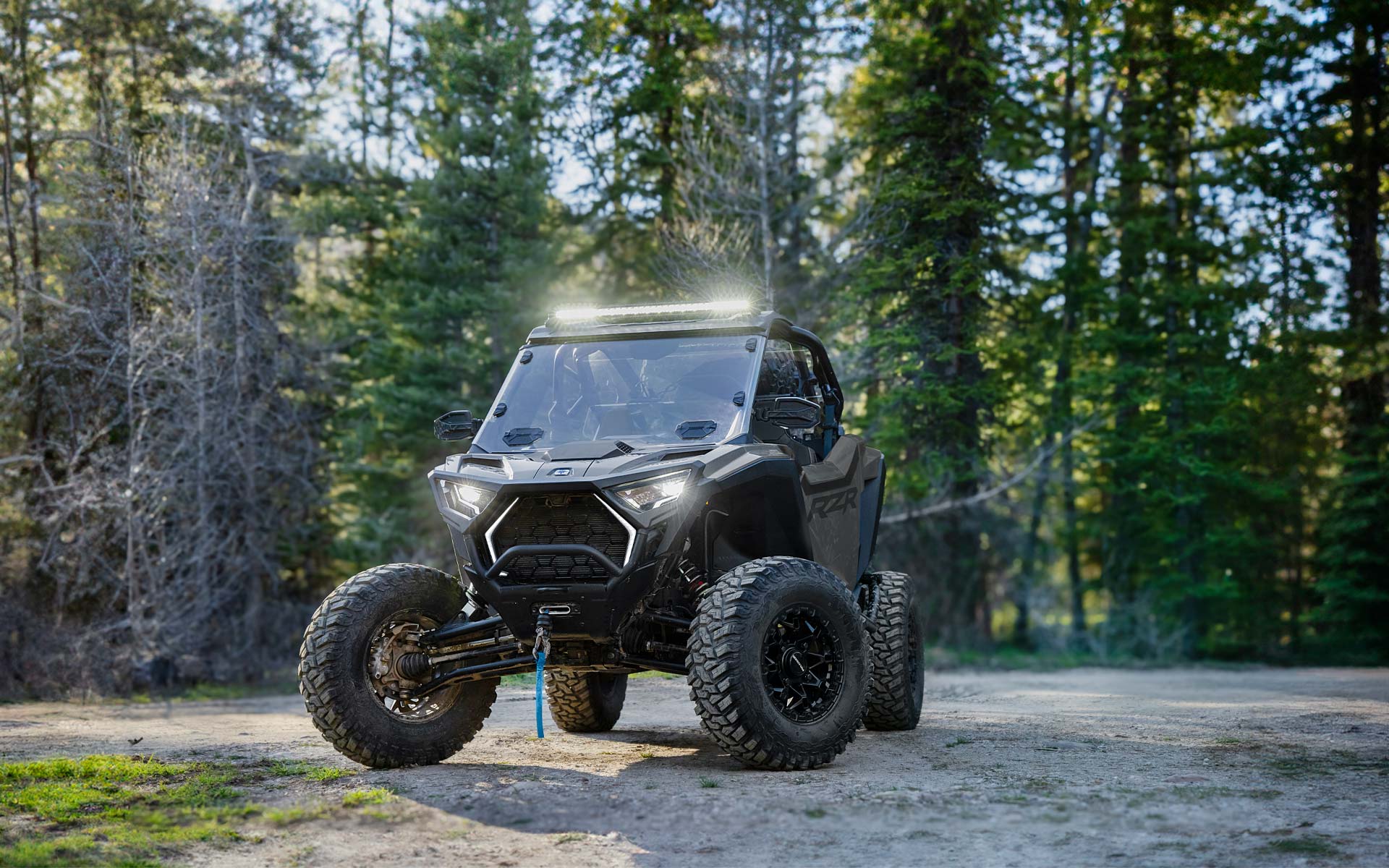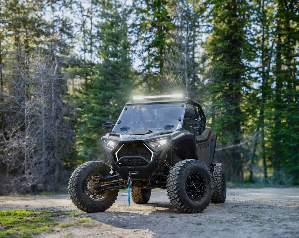 - Signature RZR Fang-Akzentbeleuchtung; weiße LED-Abblend- und Fernlichter sowie rote LED-Rück- und Bremslichter; animierte Innenraumbeleuchtung
